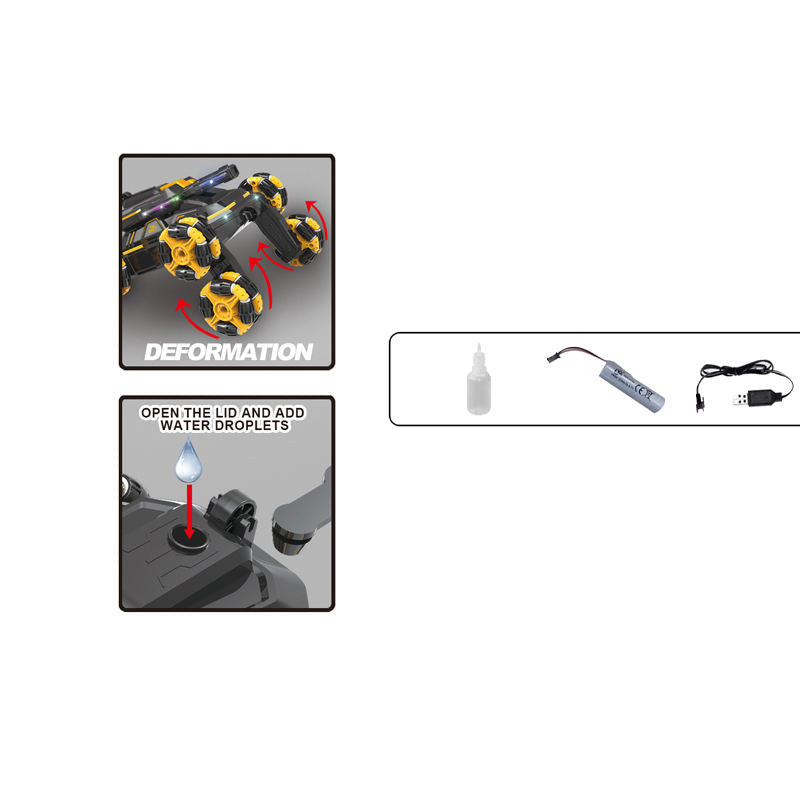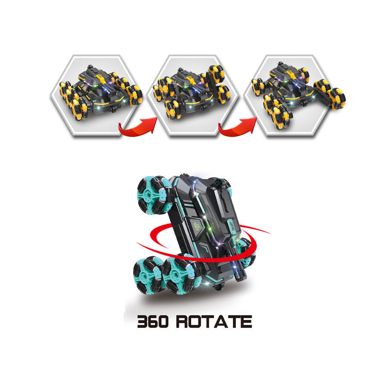 This multi-directional stunt car brings fun, action, and creativity together. With its 6-wheel powerful design, colorful LED flashlights, and realistic spray effect, it turns any surface into an adventure zone.